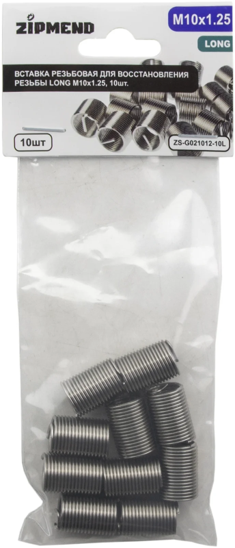 Вставка резьбовая для восстановления резьбы LONG M10 х 1.25, 10шт., ZIPMEND