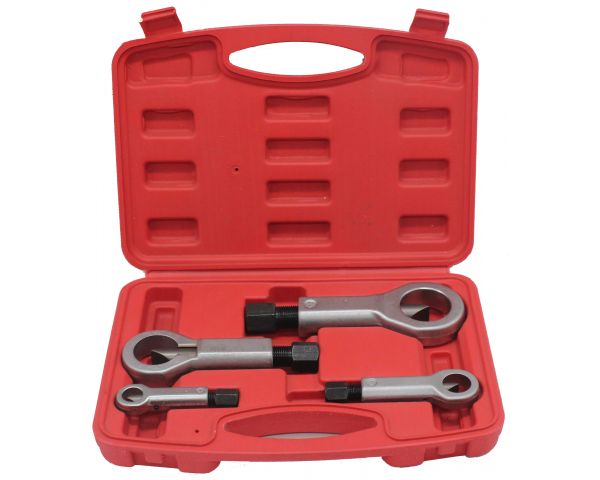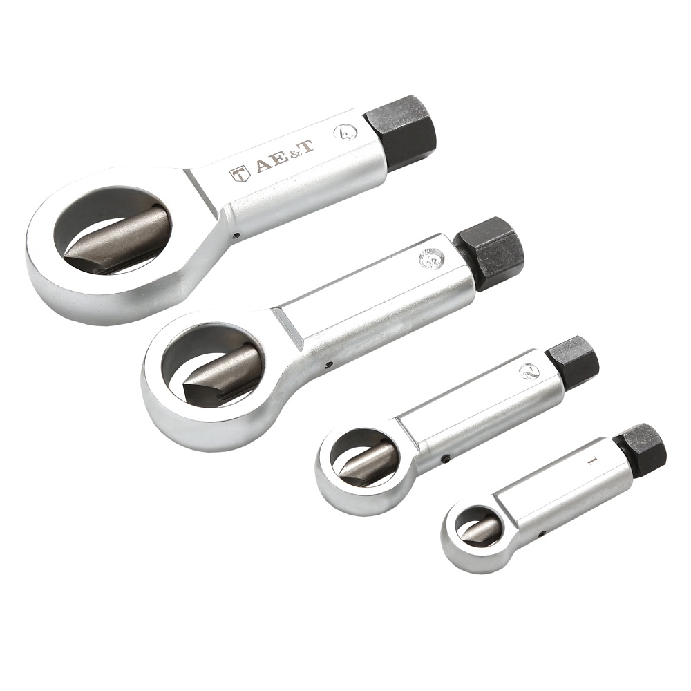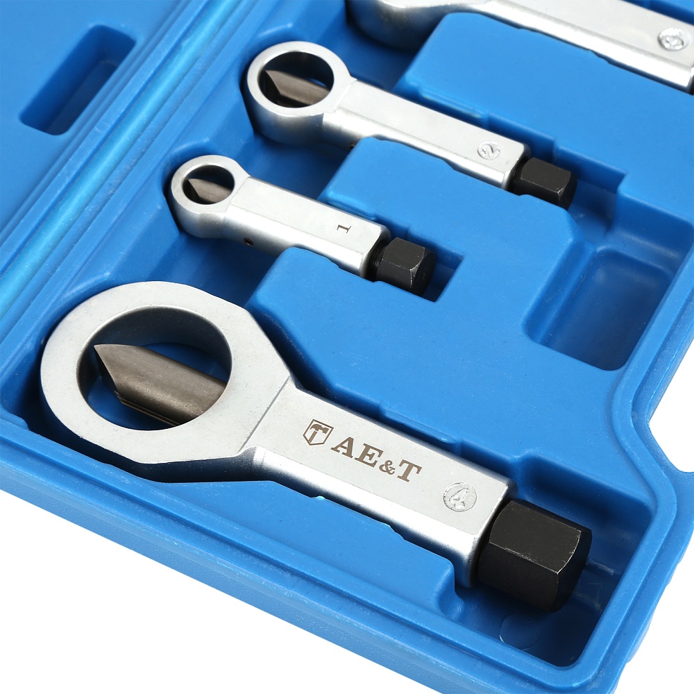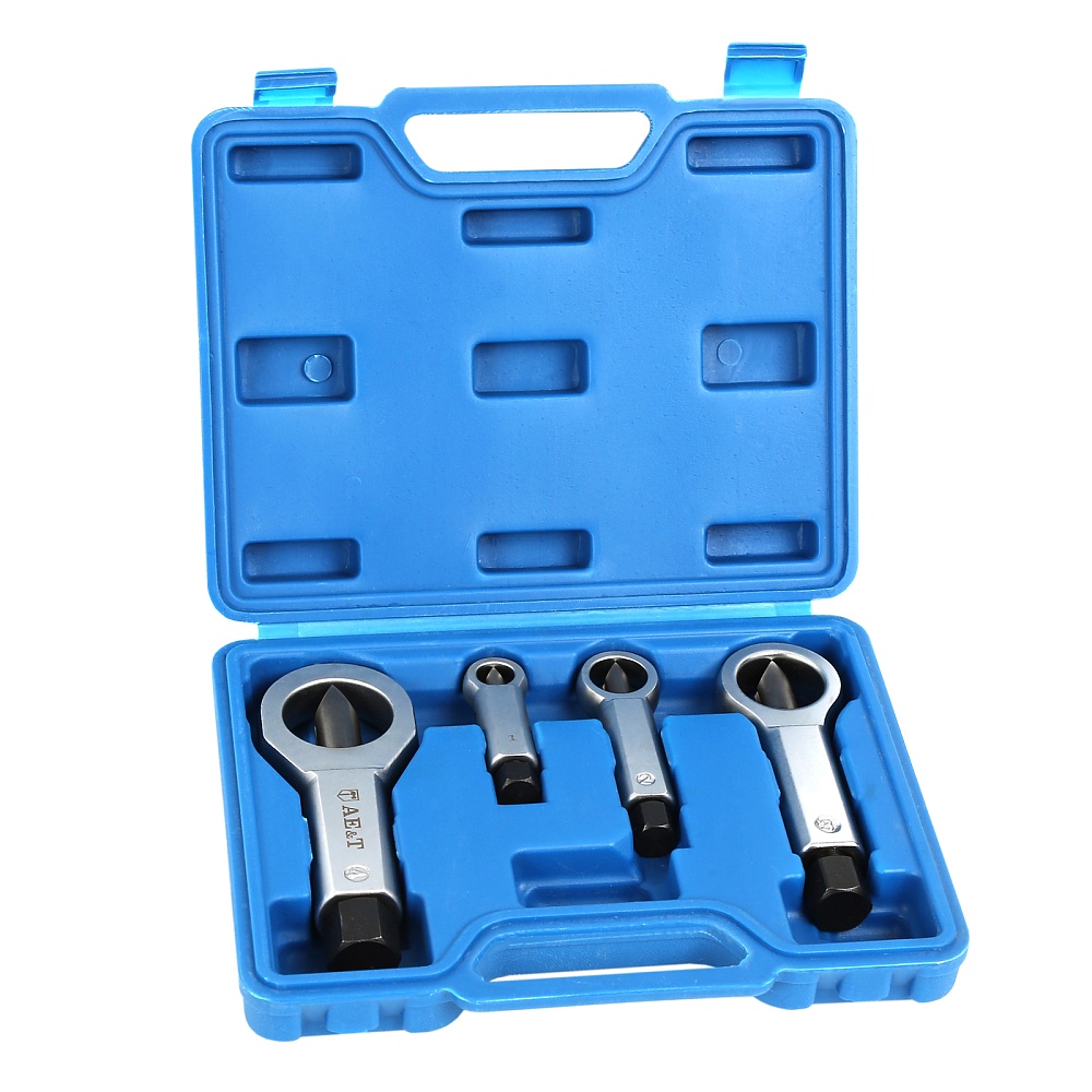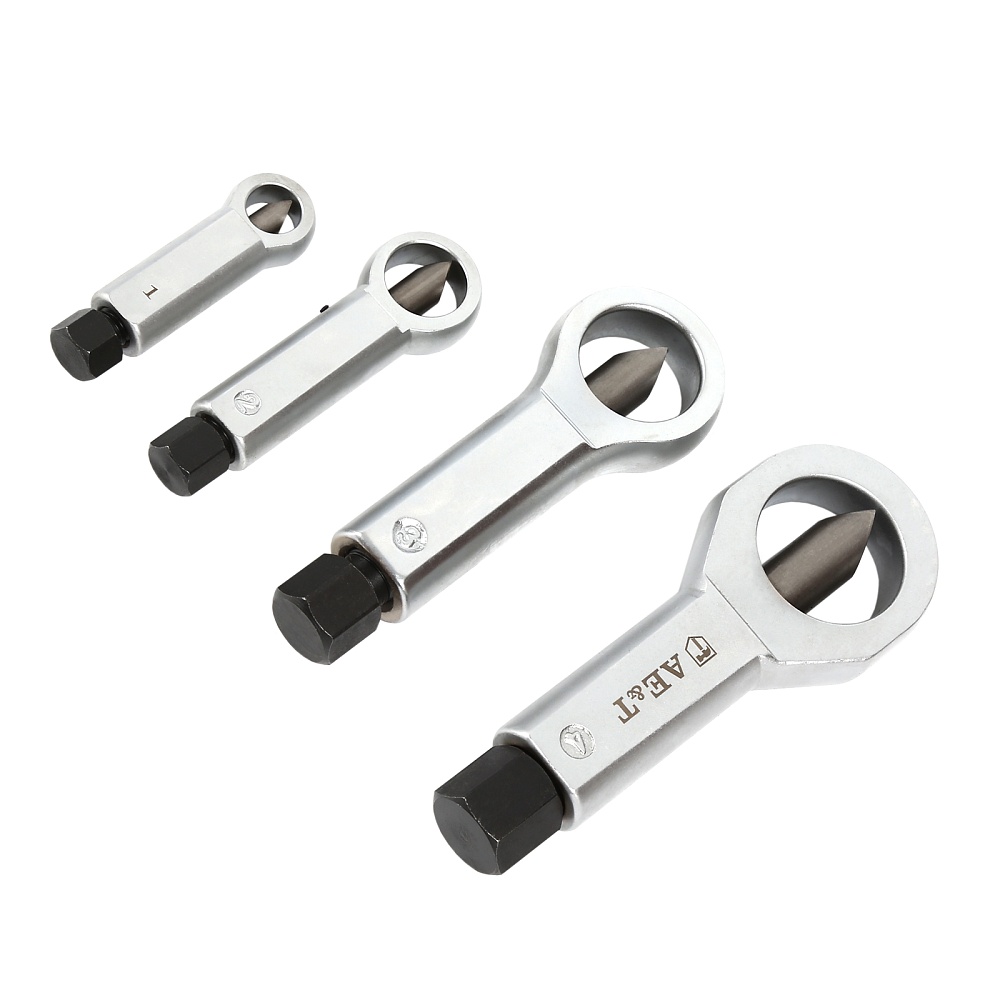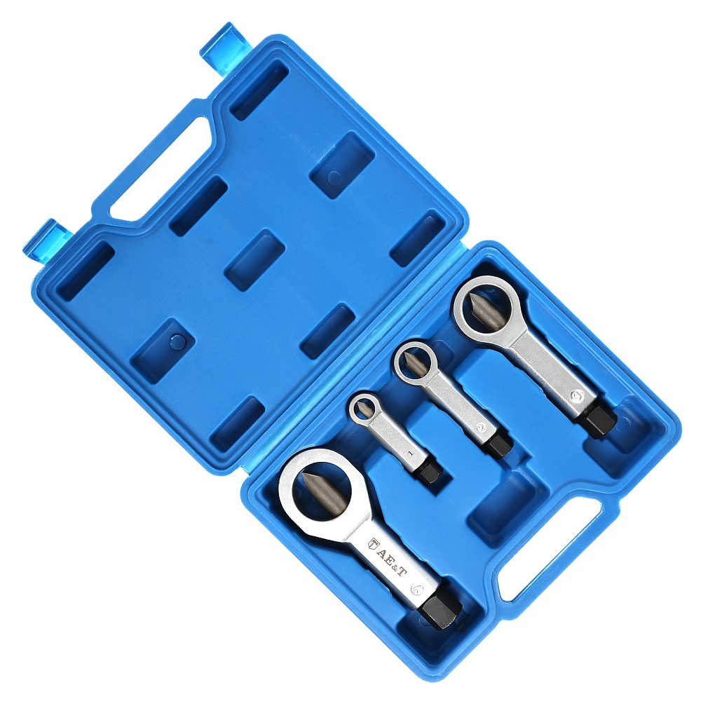 Набор гайкоколов, 4 штуки представляет собой необходимое для удаления поврежденных гаек. Инструмент применяется для безопасной работы с крепежом без повреждения болтов.