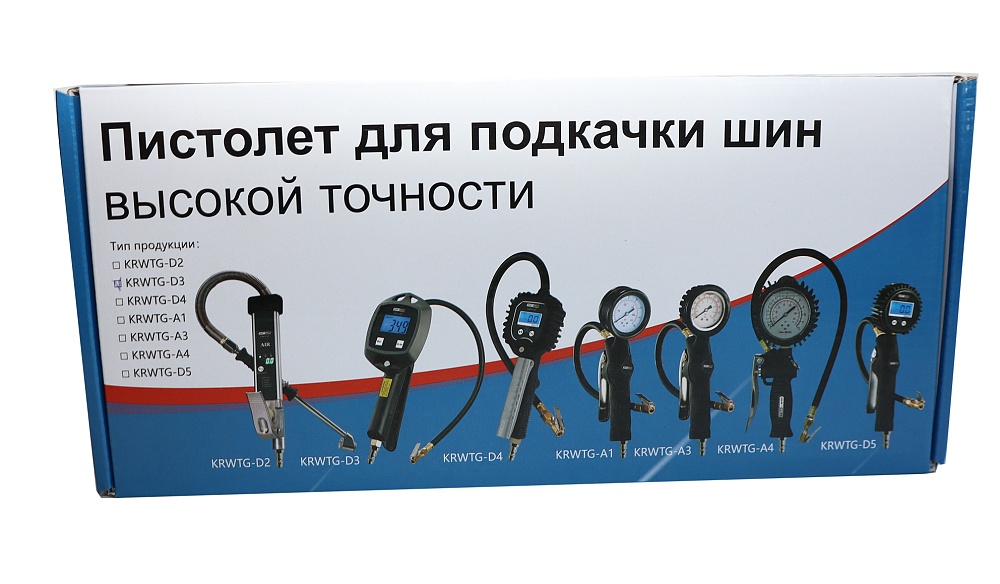 KRWTG-D3 KraftWell Пистолет для подкачки шин. В цветной коробке. Цифровой манометр. Давление до 18 бар.