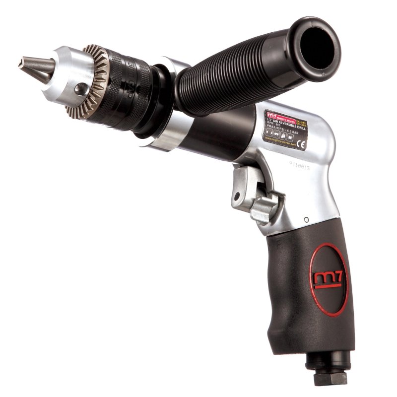 Пневматический дрель реверсивная профессиональная. Максимальное сверло – 13мм ( ?”). Скорость свободного вращения – 500 об/мин. Полностью металлический корпус. Для эксплуатации в слесарных мастерских, автосервисах, производственных и сборочных предприятиях. Реверс, малый вес.