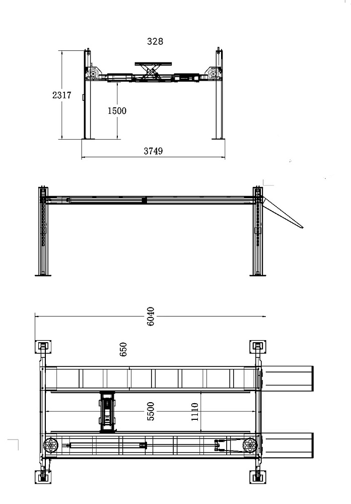 TLT-440W гидравлический (4-х стоечный) подъемник грузоподъемностью 4т. с возможностью использования дополнительного подъемной платформы с грузоподъемностью 2,0 т.