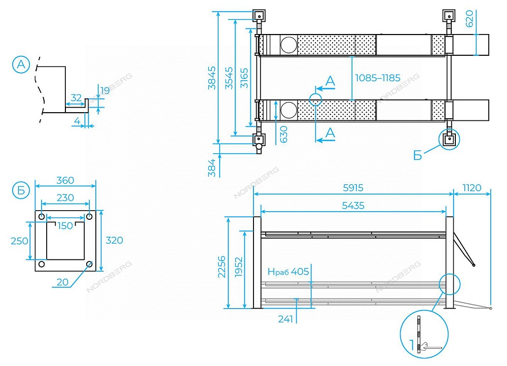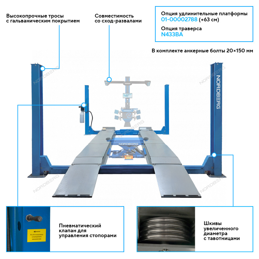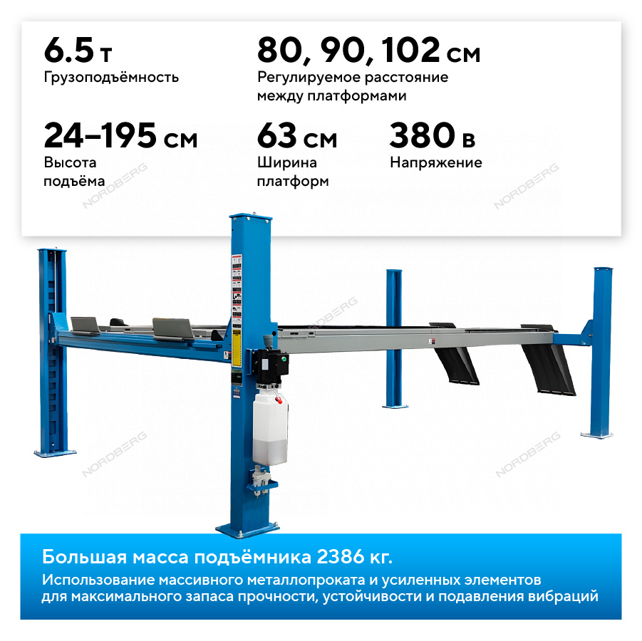Подъемник четырехстоечный 6,5 т, для сход-развала, синий NORDBERG 4465B_N433BA купить в Ростове-на-Дону цена ✅ - Все для СТО
