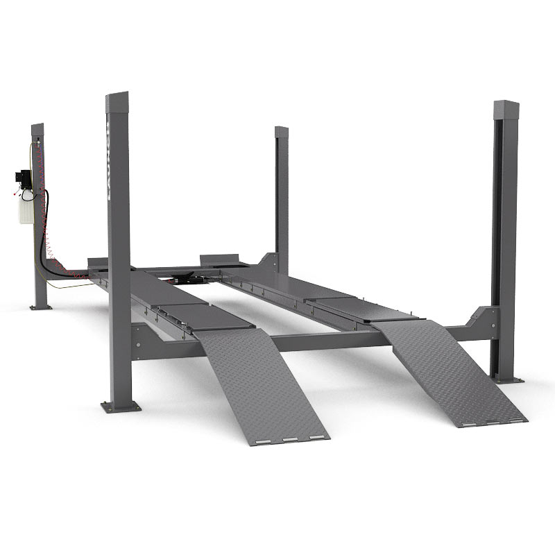 Launch TLT-440W (F) (с траверсой) Серый - гидравлический 4-х стоечный подъемник для регулировки развала-схождения. Грузоподъемность 4 тонны, имеет предустановленную траверсу 2,0 т с пневматическим управлением. Управление стопорами — пневматическое. Подходит для всех датчиковых стендов и стендов 3D.