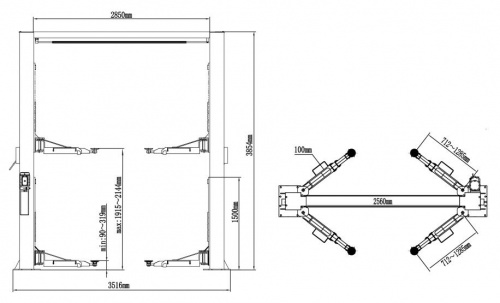 Для обслуживания легковых автомобилей (в том числе крупных SUV) и микроавтобусов. Простое и надежное управление стопорами (раздельное, тросами на каретках). Универсальные лапы подхвата (длина каждой – до 1200 мм).