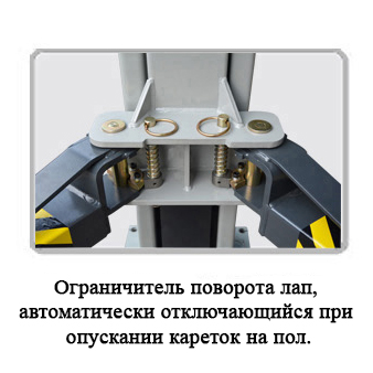 Двухстоечный электрогидравлический подъемник с верхней синхронизацией, грузоподъемность 4.5 т, высота колонны 4035/4313мм, механическое управление стопорами на одной колонне.