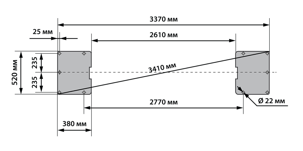 3370х520х380 мм