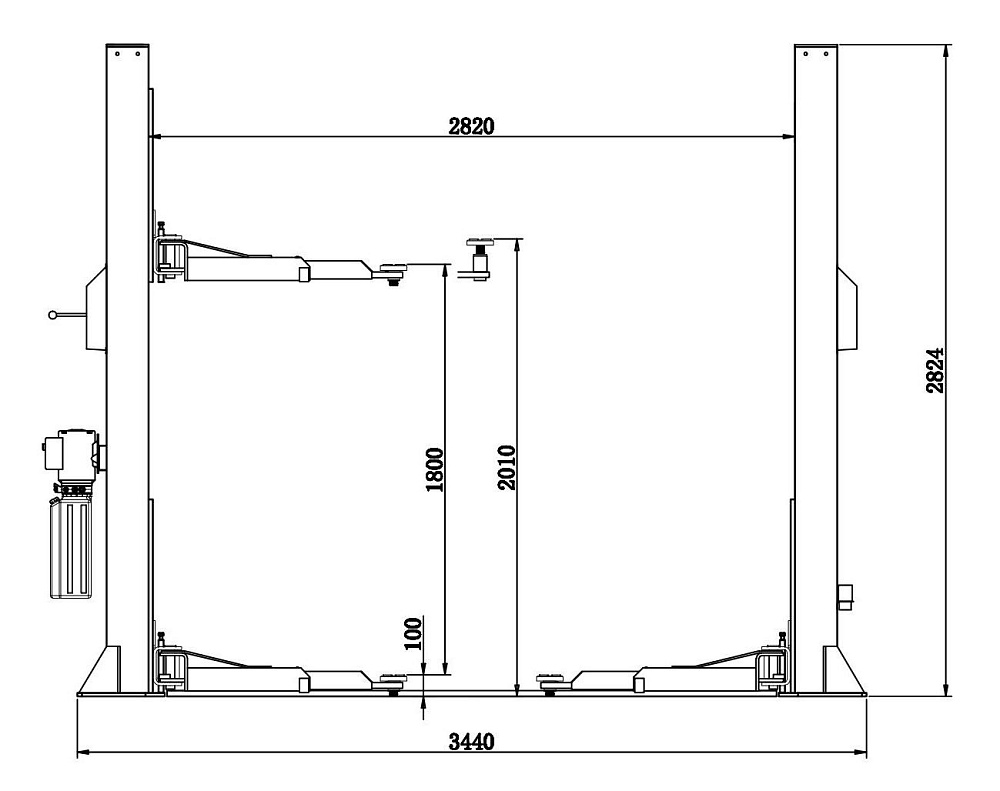 VERSA 2A/220 KraftWell Подъемник двухстоечный электрогидравлический с управлением стопорами на одной колонне, асимметричный, двухцилиндровый, г/п 4000 кг., 2,2 кВт, высота подъема 2010 мм., расстояние между стойками 2820 мм., с нижней синхронизацией.
