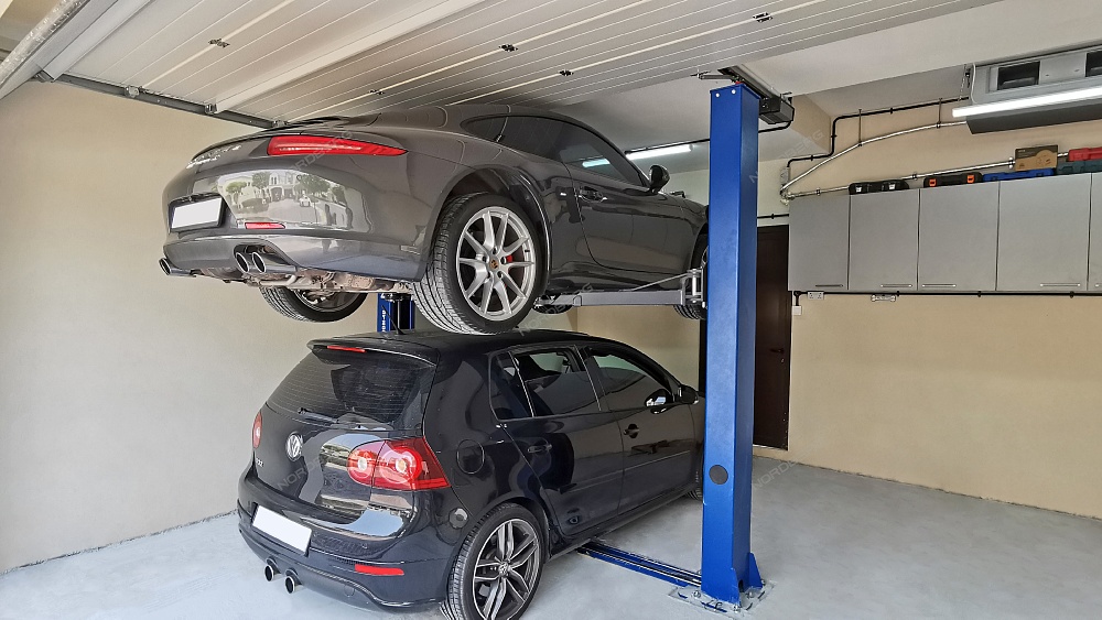 Подъемник 220V 2х стоечный 4т, со снятием стопоров с одной колонны (синий) NORDBERG N4120BM-4B