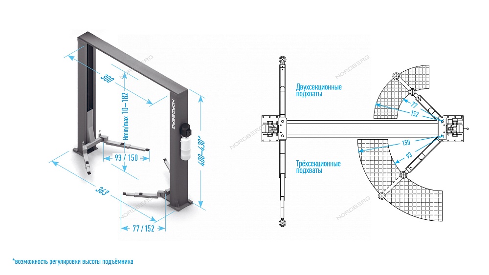 Подъемник двухстоечный 4,5 т, верхняя синхронизация, с электростопорами, 380 В NORDBERG N4124HE-4,5G купить в Ростове-на-Дону цена ✅ - Все для СТО