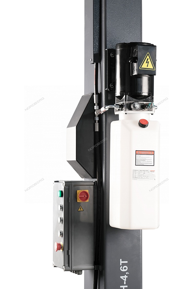 NORDBERG N4124HE-4,5G — электрогидравлический двухстоечный подъёмник с верхней синхронизацией, 4.5 тонн, 380 В.