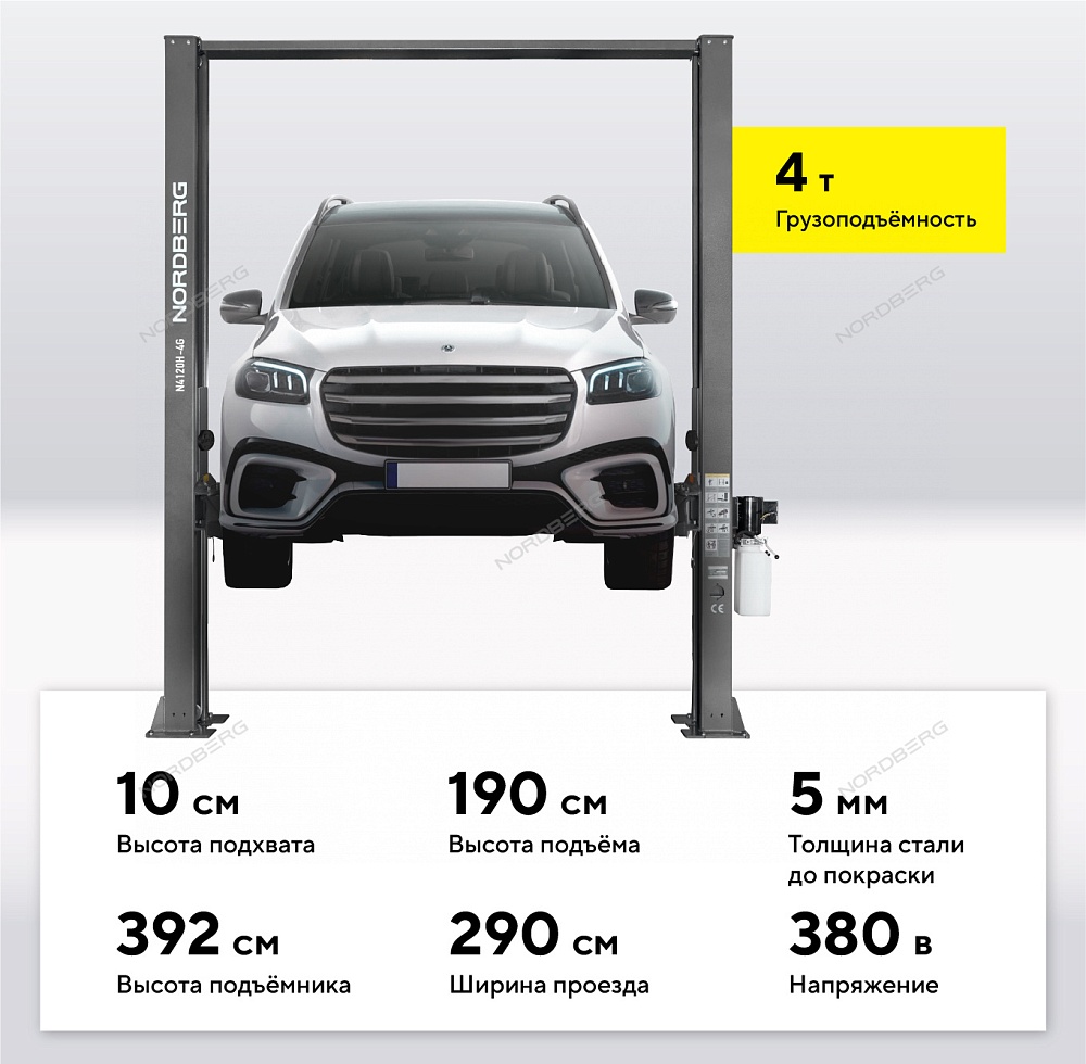 Двухстоечный подъемник NORDBERG N4120H-4G_3+2 – безопасное и надежное оборудование для проведения различных видов работ по обслуживанию и ремонту автотранспорта в автосервисах и СТО.