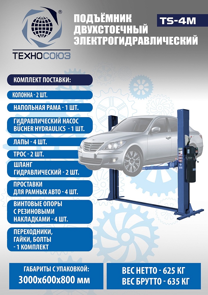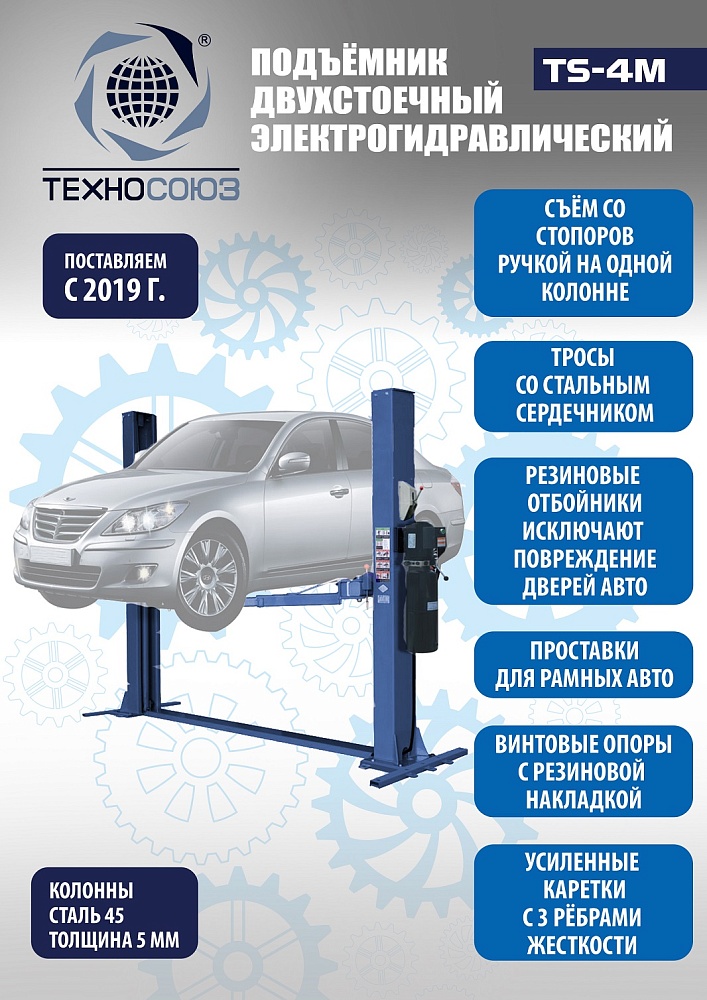 TS-4M Подъемник 2-хст. г/п 4 т с напольной рамой (220 V ТВ)
