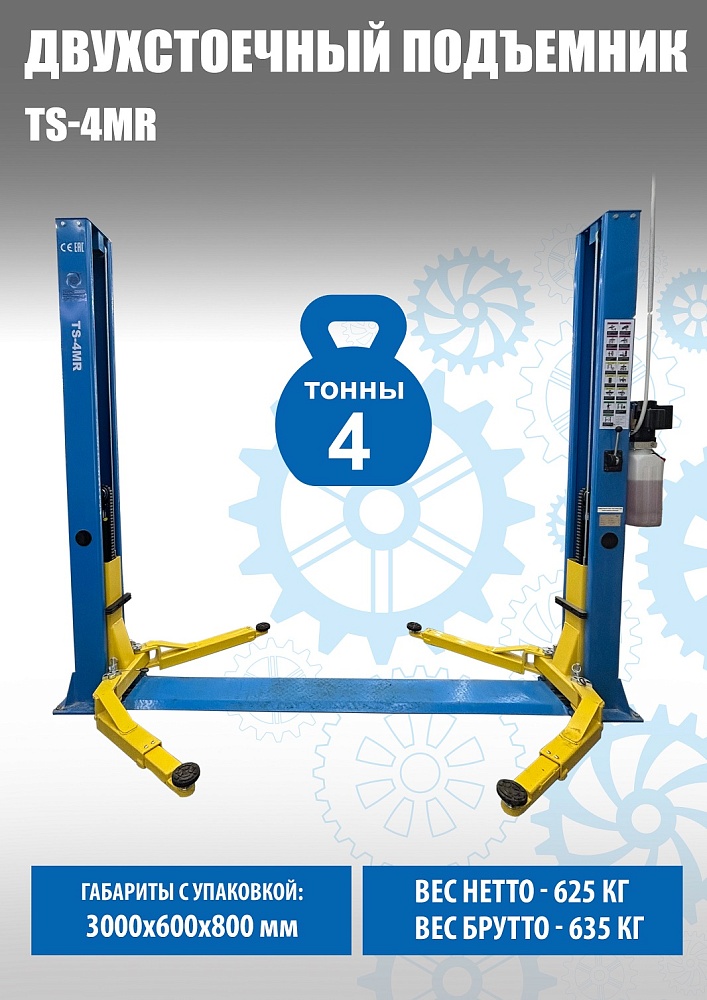 TS-4MR Подъемник 2-хст. г/п 4 т съем-ручка+проставки (2025) (380 V ТВ)