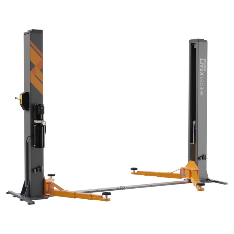 Двухстоечный подъемник с нижней синхронизацией WiederKraft WDK-524N грузоподъемностью 5000 кг. Отличается высокой надежностью конструкции: усиленный профиль подъемных кареток и лап, направляющие каретки из запатентованного полимера, стальные шкивы (сталь 45), стальные тросы 10 мм, толщина металла 6,5 мм. Управление стопорами с одной колонны экономит время при спуске автомобиля. Наличие концевого ограничителя подъема обеспечивает дополнительную безопасность во время эксплуатации подъемника. Конфигурация подъемника позволяет обслуживать все самые популярные типы автомобилей: от А-класса до микроавтобусов.