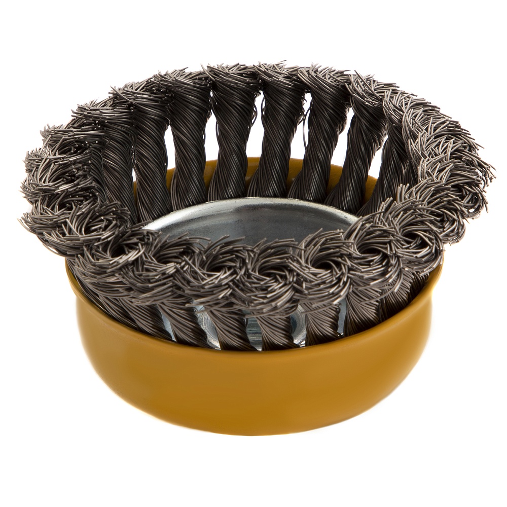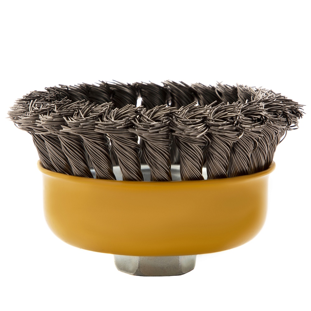 Щетка для УШМ, 100 мм, "Чашка", крученая нержавеющая проволока 0.5 мм, М14 Denzel купить в Ростове-на-Дону цена ✅ - Все для СТО