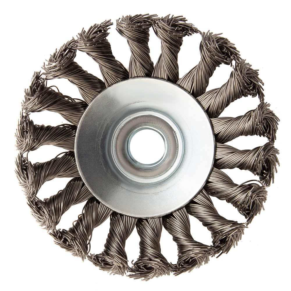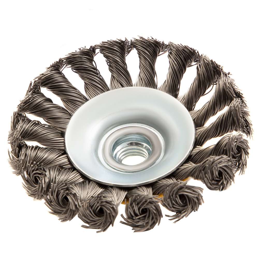 Щетка для УШМ, 100 мм, "Тарелка", крученая нержавеющая проволока 0.5 мм, М14 Denzel купить в Ростове-на-Дону цена ✅ - Все для СТО