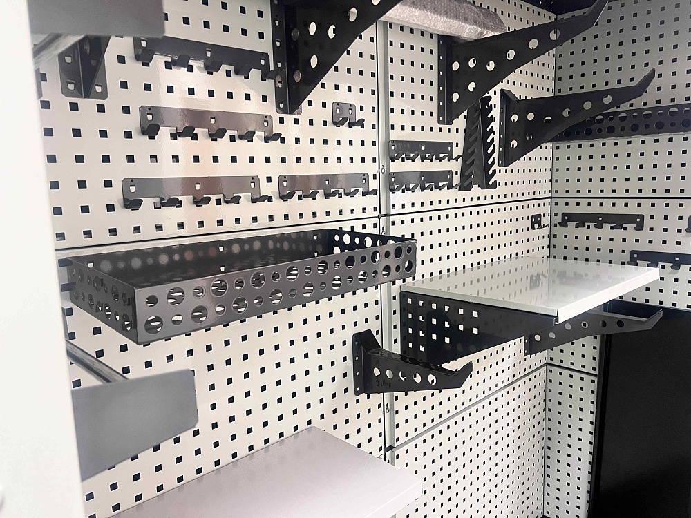 Модульная система хранения с тремя независимыми роллетными блоками. Сборная конструкция, оцинкованный металл, порошковая окраска, антикоррозийная обработка, множество вариантов наполнения.