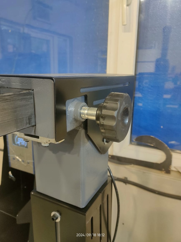 Консоль совершенно нового типа, отводящаяся в сторону путем подъема и поворота колонны при помощи пневмоцилиндра. Управление колонной осуществляется педалью, расположенной в передней части станка.