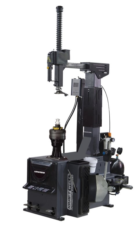 KRW28M KraftWell Станок шиномонтажный автоматический, поворотный стол c адаптером зажима через центральное отверстие диска, двухскоростной двигатель 380 В, 8-10 бар, диаметр дисков 14-28", диаметр колеса до 1140 мм (45"), ширина колеса до 355 мм (14"), отжимное усилие 2500 кг.