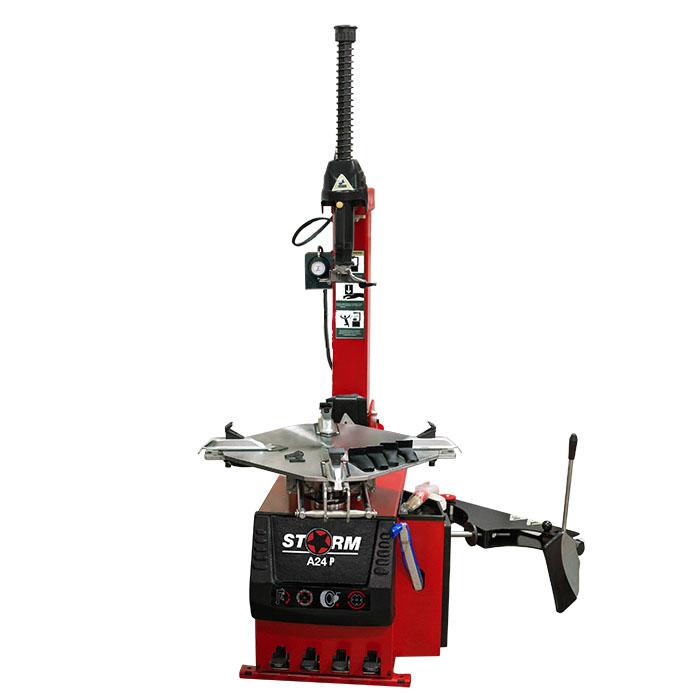 Storm А24 P - автоматический шиномонтажный станок с пневматической фиксацией и системой быстрой накачки шин. Встроенный комплект дооснащения позволит вам освободить руки и ускорить процесс работы.Монтажный стол станка A24 P предназначен для работы с дисками до 24”.Функциональные преимущества стенда А24 P:- Комплект дооснащения, который включает в себя педаль, раздаточную коробку и манометр "Michelin" (пр-во Италия);- Две скорости вращения монтажного стола (в станках на 380В);- Увеличенная скорость работы отжимной лапы;- В комплекте - пластиковые вставки в монтажную лапу, накладка на отжимную лапу, насадки на зажимные кулачки;- Есть возможность поменять педали местами между собой (кроме управления вращением);- Подготовка под установку третьей руки справа;- Гарантия на станок 24 месяца.