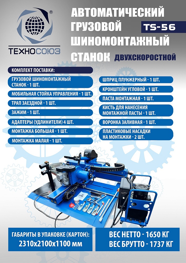 TS-56 Грузовой шиномонтажный станок до 60”, 380В. купить в Ростове-на-Дону цена ✅ - Все для СТО