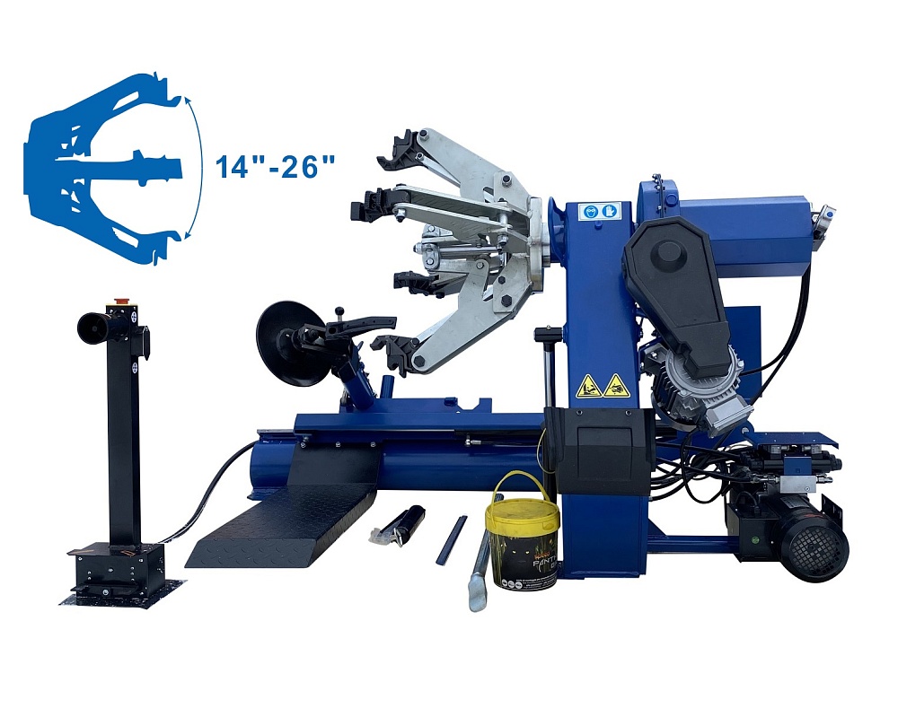 Шиномонтажный станок для грузовых автомобилей 46TRK Универсальный электро-гидравлический шиномонтажный станок который сочетает в себе ряд уникальных функций и возможностей. Предназначен демонтажа и монтажа шин грузовых автомобилей, автобусов, тракторов и промышленных транспортных средств.