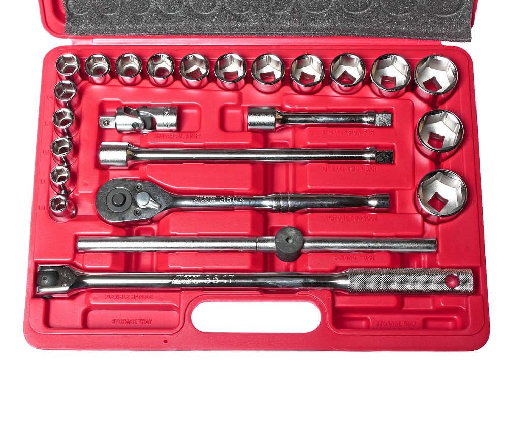 18 ед. головка 1/2": 10, 11, 12, 13, 14, 15, 16, 17, 18, 19, 21, 22, 23, 24, 27, 29, 30, 32 мм.
