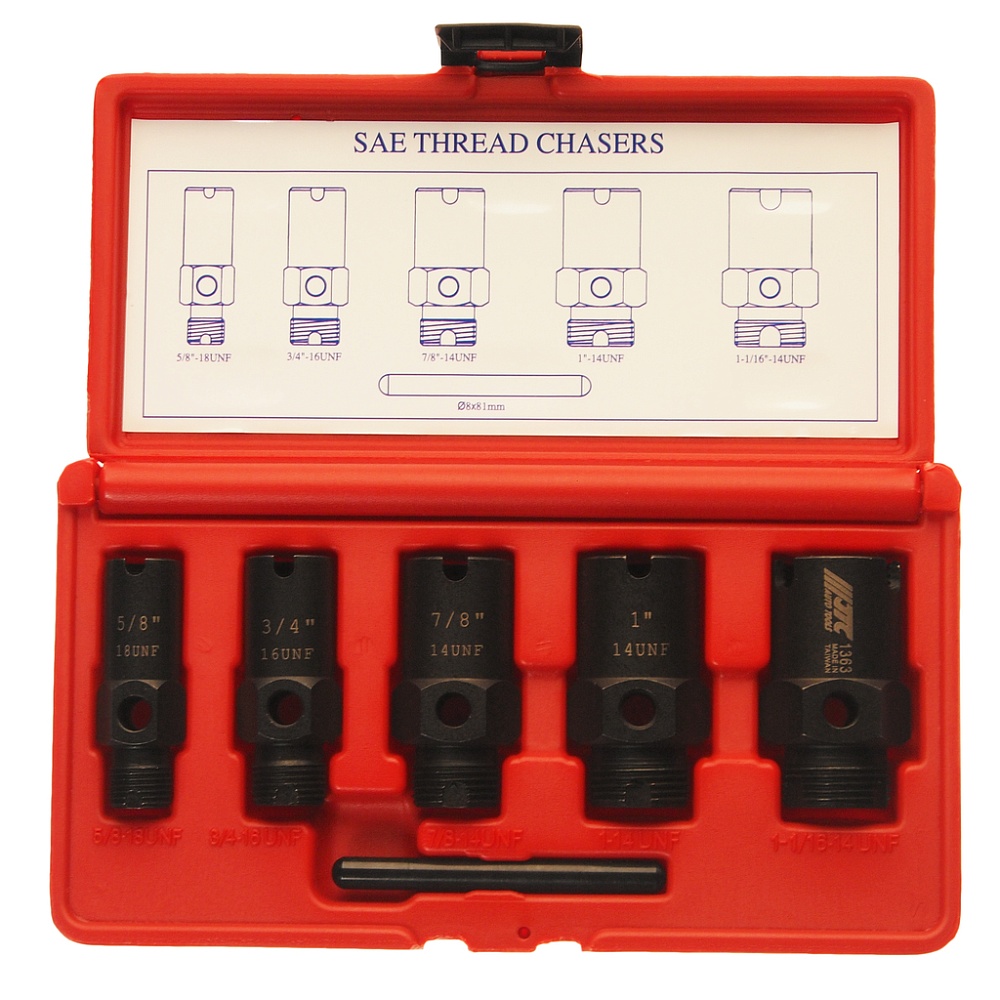 Набор инструментов для восстановления резьбы штуцеров систем кондиционирования 6пр. в кейсе JTC