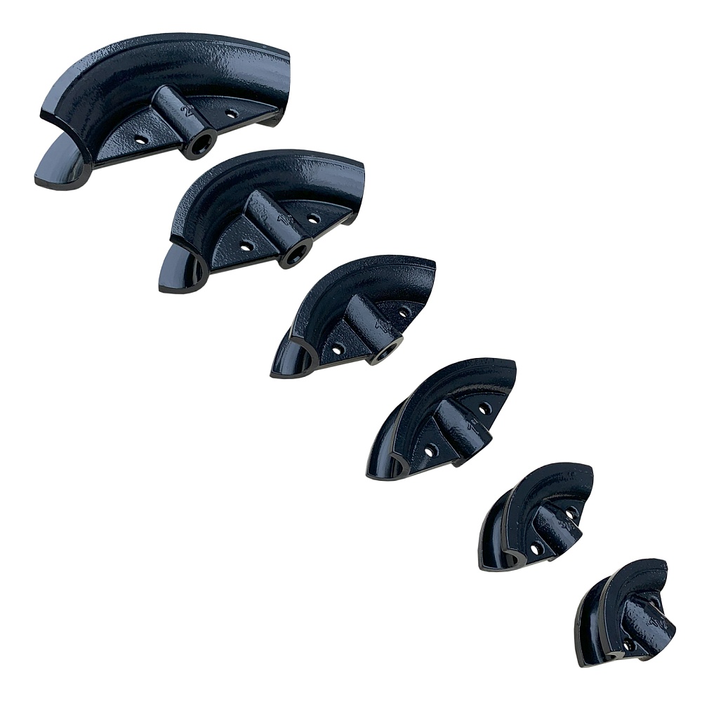 - Комплект башмаков для различных диаметров труб: 1/2', 3/4', 1', 1 1/4', 1/2' – 2', 2' .