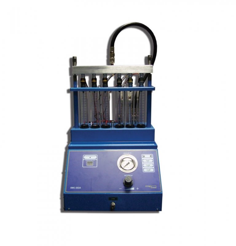 SMC-302АЕ - Стенд для для проведения диагностики и промывки до 6 инжекторов в ультразвуковой ванне. Автоматический слив тестирующей жидкости. Работает от сжатого воздуха. Имитация работы форсунок происходит с помощью встроенного электронного блока управления форсунками. В комплект поставки входит ультразвуковая ванна объемом 2,0 литра с подогревом и мощностью генератора 60 ВТ.