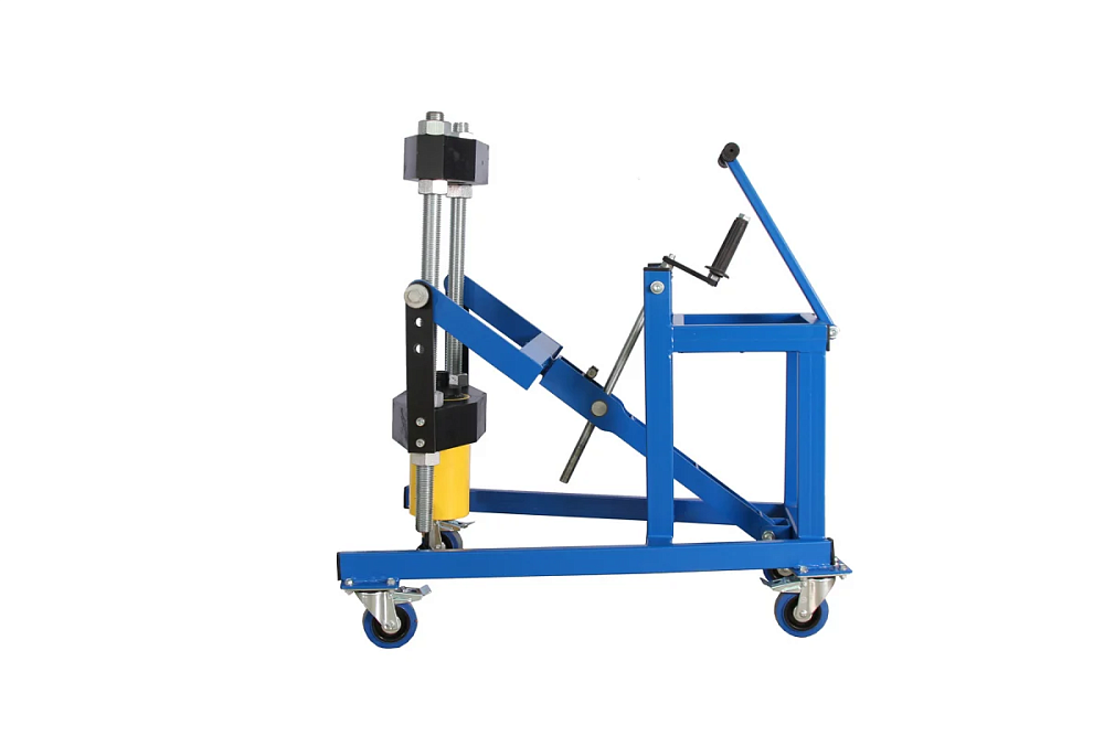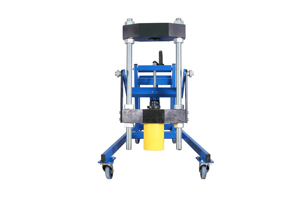 Мощный гидравлический мобильный пресс с усилием 100 тонн позволяет быстро и безопасно выпрессовывать шкворни грузовых автомобилей без разборки оси. Оснащён поворотно-подъёмным механизмом и тележкой, что обеспечивает удобство работы даже в труднодоступных зонах колесной ниши.